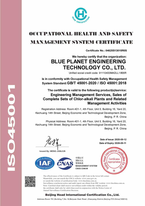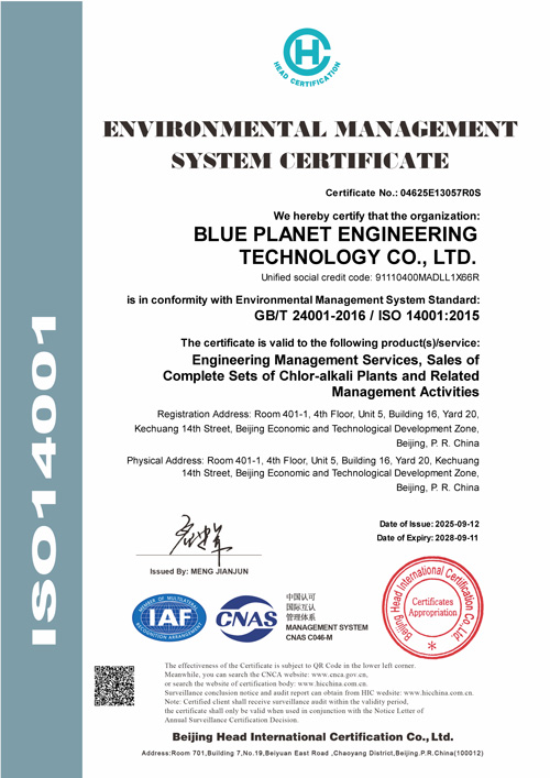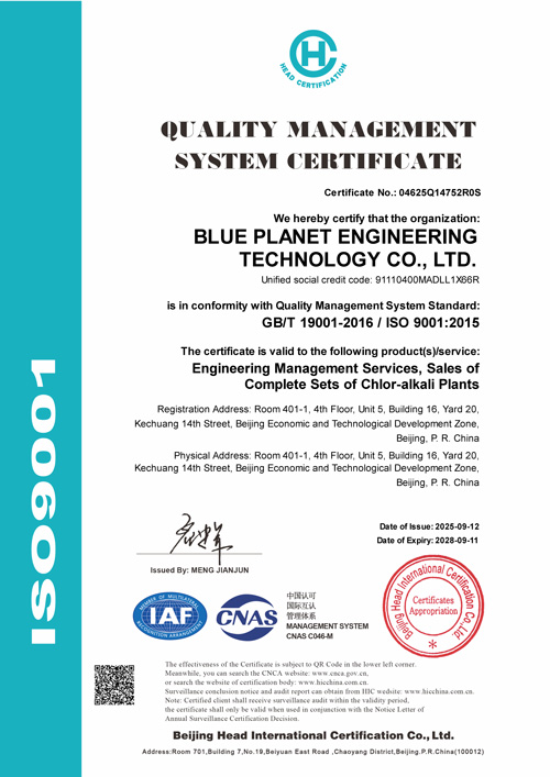 Nous sommes BPC (BLUE PLANET ENGINEERING TECHNOLOGY CO., LTD), une société d’ingénierie mondiale qui intègre l’ingénierie, la technologie, le service et le commerce international. Nous nous concentrons sur la fourniture de solutions intégrées pour les usines de chlore alcalin, les technologies de soutien en amont et en aval, ainsi que les contrats généraux d’epc. Nous sommes le leader de la Chine pour le marketing à l’étranger et les ventes d’affaires, aussi bien qu’une plate-forme pour fournir la technologie et le service pour les clients globaux de chlore-alcali.